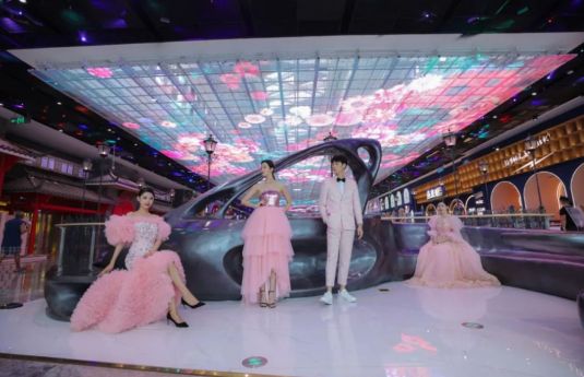 室內,吊裝在天花頂上的大型LED天幕屏宛如一條色彩艷麗的綢緞、明亮深邃的天空,夜幕降臨,氣勢恢宏,炫彩繽紛的天幕畫面。同時,天幕的互動性強,視覺沖擊力強,音響效果環繞四周堪比影院效果,可以打造非常好的時尚氛圍感。在戶外,高清亮麗的顯示效果給當地人群帶來了震撼感受,再配合以新型LED燈條、燈帶、投影等照明設備,起到亮化、渲染作用,成為城市新地標。